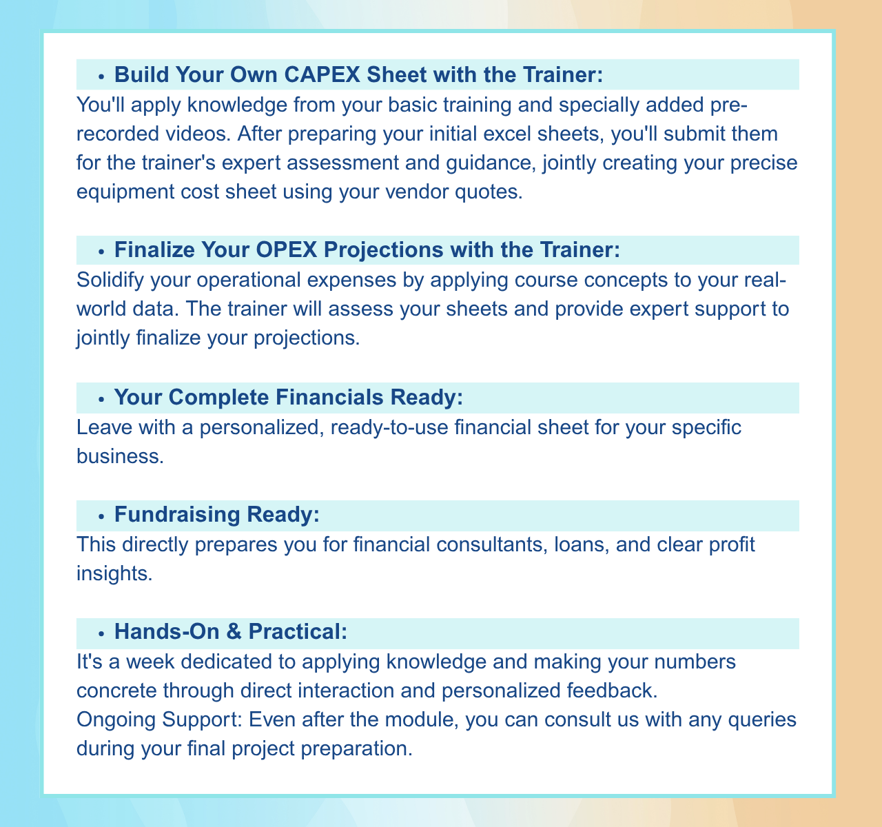 ( 1 Week Extension to create your detailed project finance excel sheets.)